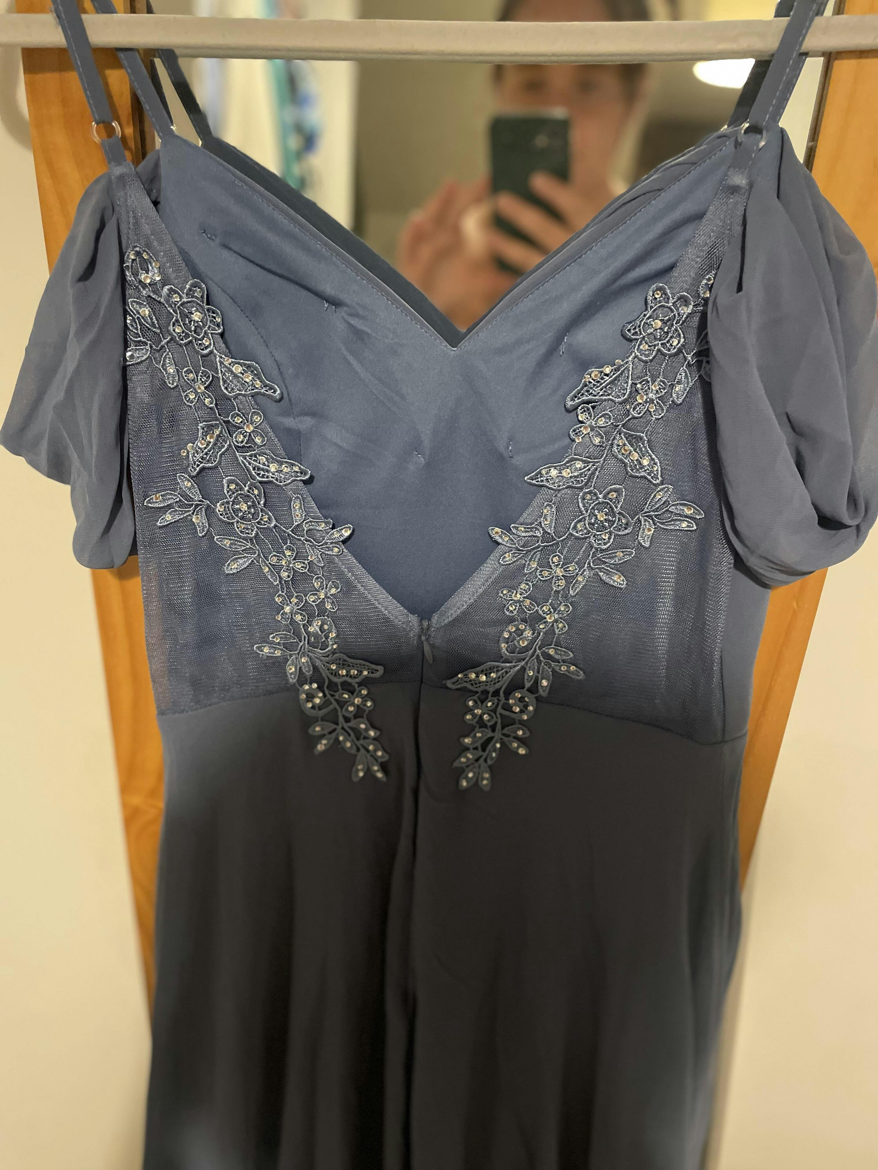 Romantic and timeless, this off-shoulder maxi dress features a flowy silhouette and soft fabric that drapes beautifully. The shoulder-baring neckline adds an elegant touch, while the floor-length design makes it ideal for bridal parties, formal evenings, or summer weddings.