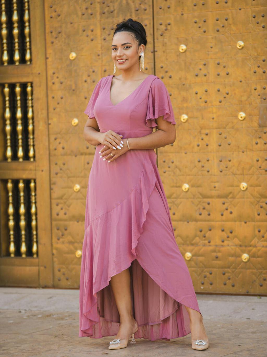 Need the perfect bridesmaid dress for an upcoming wedding but don't want to wait forever for shipping? Our Charming Chiffon High Low Bridesmaid Dress is ready to ship within 48 hours of your order! This stunning dress features a playful ruffle hemline that moves beautifully down the aisle and on the dance floor. The flattering V-neck and short sleeves provide just the right amount of coverage while still looking fresh and elegant.