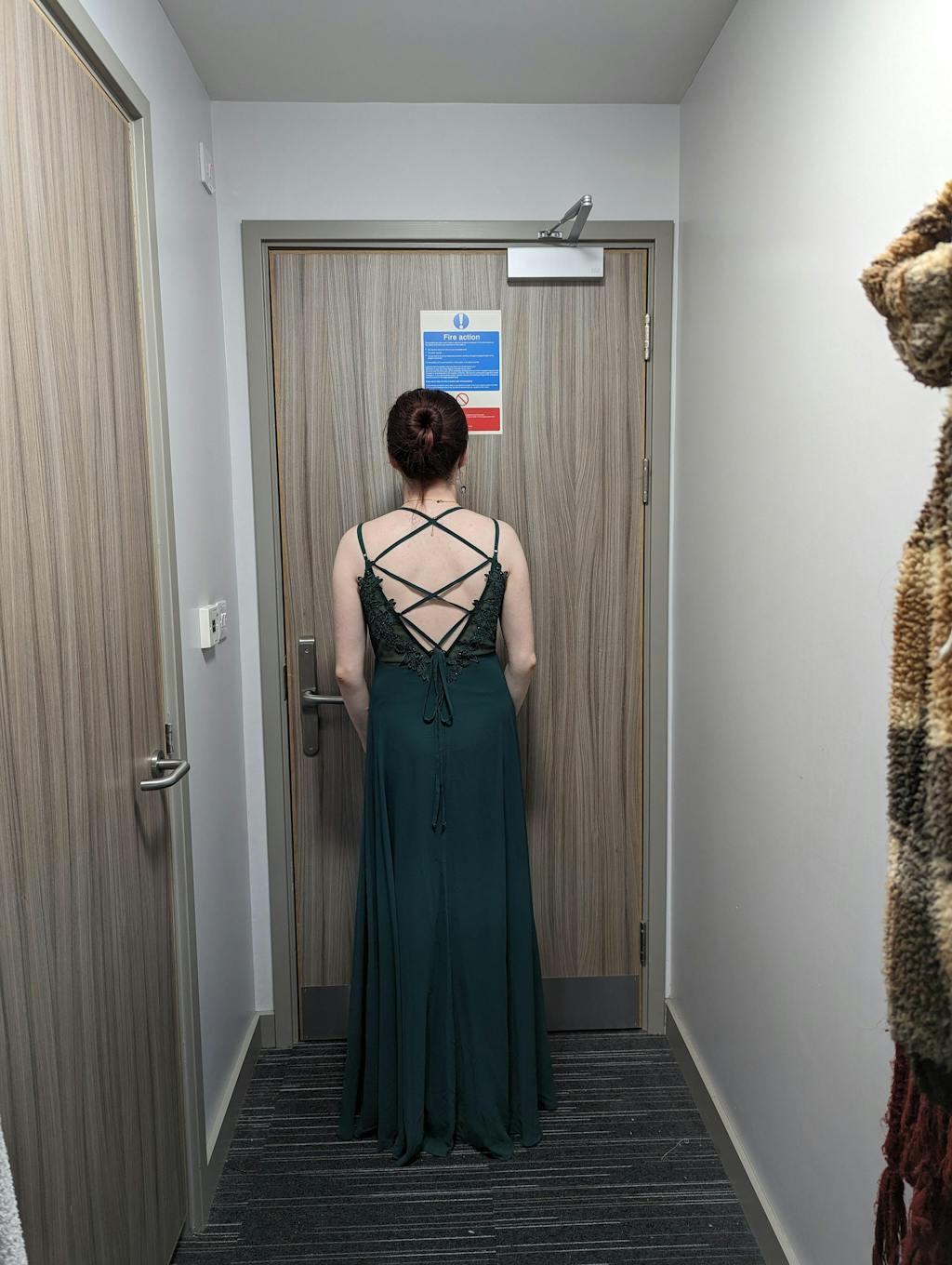 This stunning dress features delicate spaghetti straps and an elegant open back design that can be styled multiple ways to suit your preference. The beautiful lace details add a touch of romance while the flowing chiffon creates a graceful silhouette as you walk down the aisle. Available in a variety of colours, this dress is perfect for any bridal party.