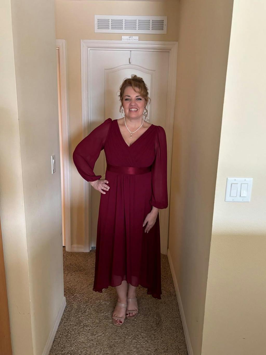 Chiffon Long Sleeve Empire Waist Midi Evening Dress