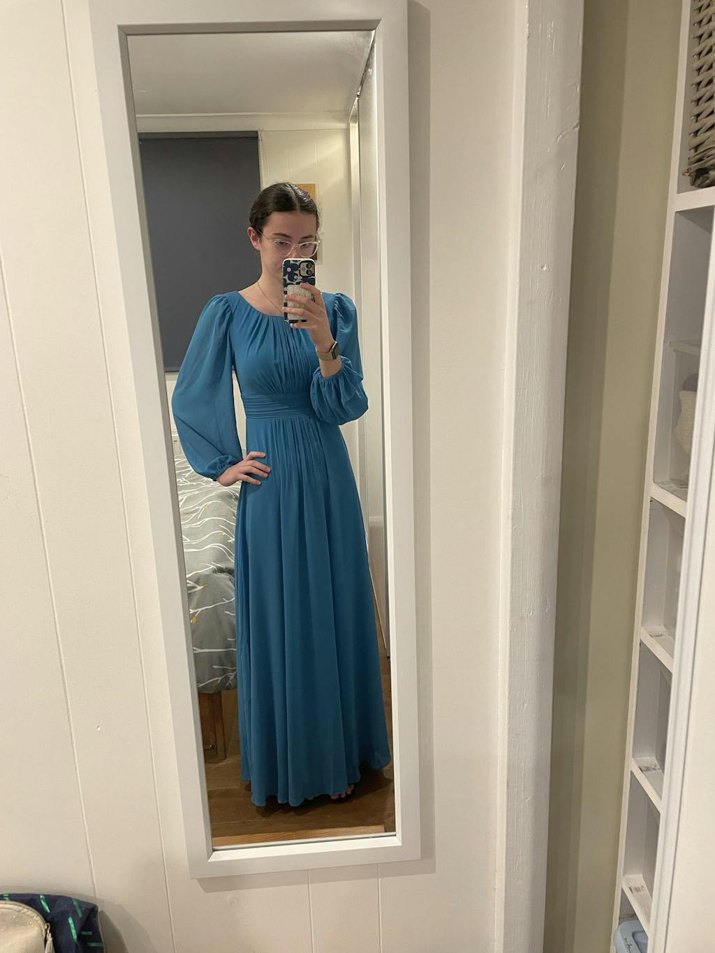 Chiffon Long Sleeve Pleated Maxi Bridesmaid Dress