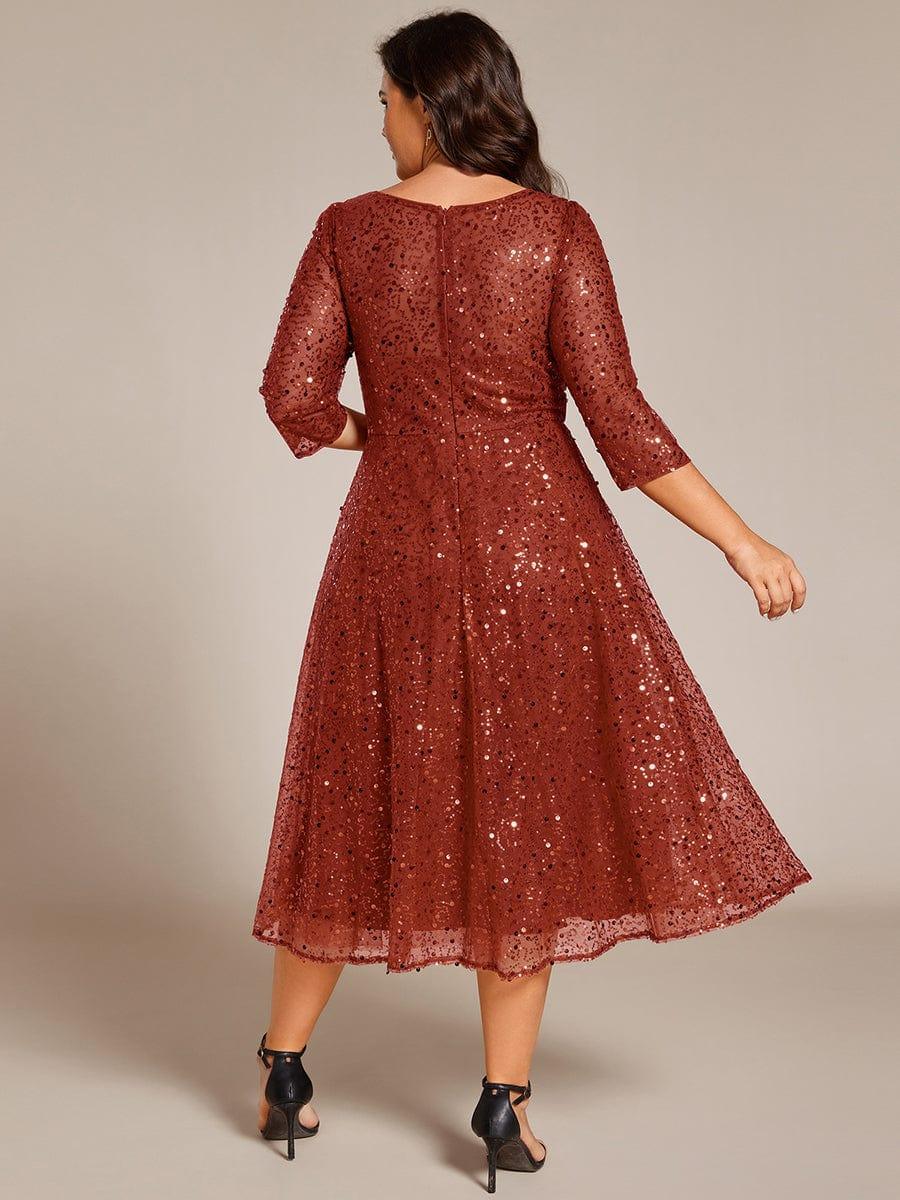 Dazzling Sequin A-Line Midi Evening Dress with Long Sleeves