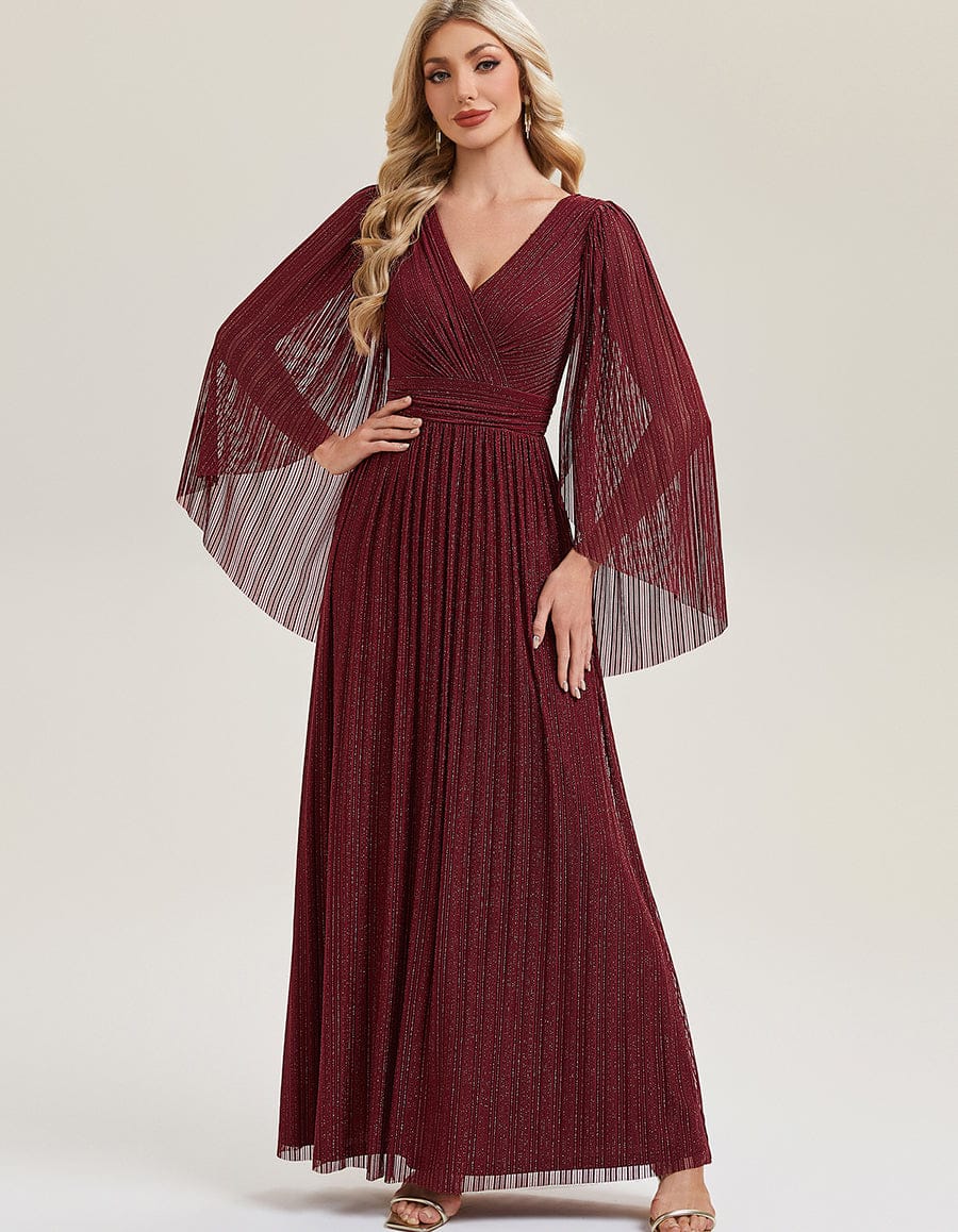 Chiffon Long Sleeve Pleated Floor Length Bridesmaid Dress #color_Burgundy Chiffon Long Sleeve Pleated Floor Length Bridesmaid Dress #color_Burgundy
