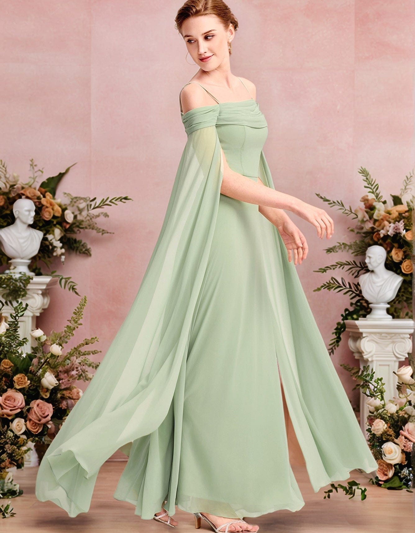 Off Shoulder Maxi Satin Bridesmaid Dress #color_Sage Green Off Shoulder Maxi Satin Bridesmaid Dress #color_Sage Green