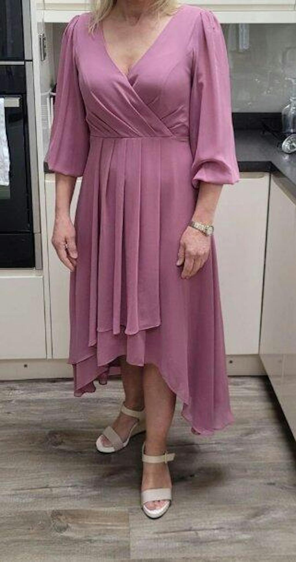 Discover timeless elegance with our 3/4 Sleeve V-Neck High Low Chiffon Wedding Guest Dress. The graceful combination of a V-neckline and flowing chiffon fabric exudes sophistication, while the high-low hem adds a modern touch. Perfect for weddings, this dress ensures you stand out as a stylish and refined guest. With its delicate snowflake-like chiffon and flattering design, you'll feel both comfortable and chic as you celebrate love and joy. Elevate your wedding guest look with this exquisite dress, designed to make you feel confident and radiant throughout the event.