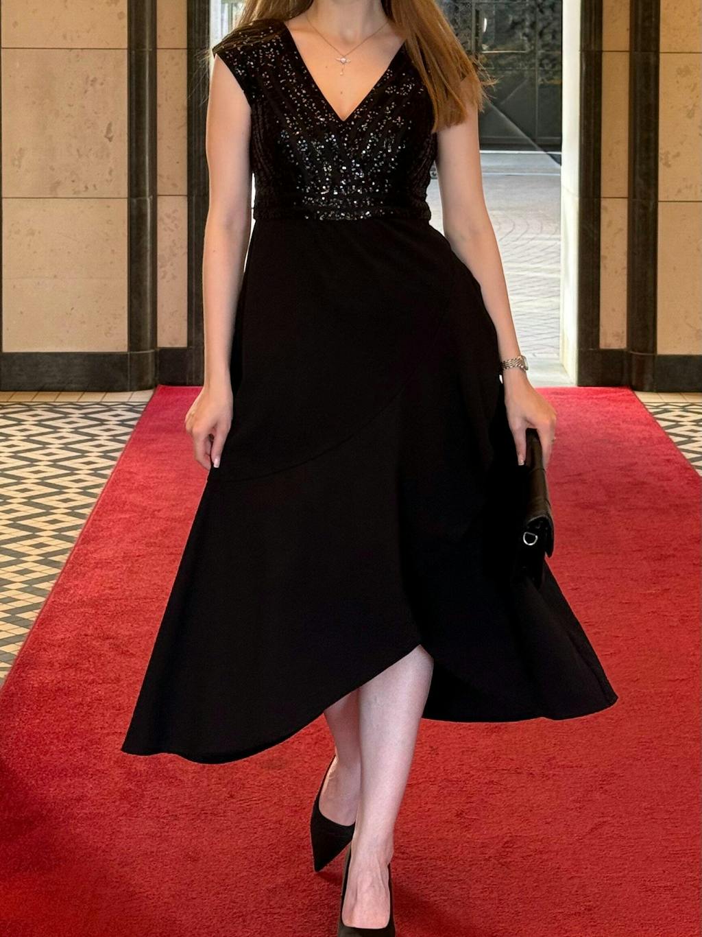 Sequin Asymmetrical Midi Wedding Guest Dress
