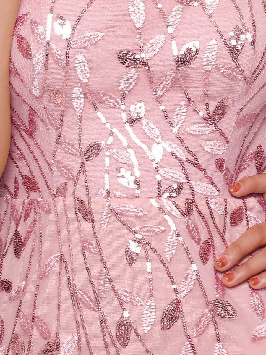This gorgeous sequined tulle dress oozes romance with its shimmery leave design and a sheer round neckline. It is a perfect choice for people who are looking for an elegant look, but its delicate details add just enough flair to show your taste. It's perfect for evening parties, cocktails, prom, homecoming, graduation, weddings, and any other formal affair!
