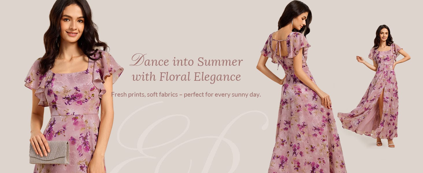 A romantic floral print meets vintage charm in this maxi dress, featuring soft ruffle sleeves, a flattering square neckline, and an adjustable tie-back design. The flowing silhouette moves beautifully, making it perfect for weddings, garden parties, or breezy evenings.