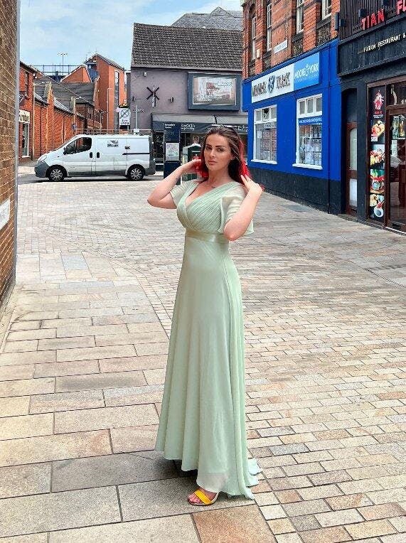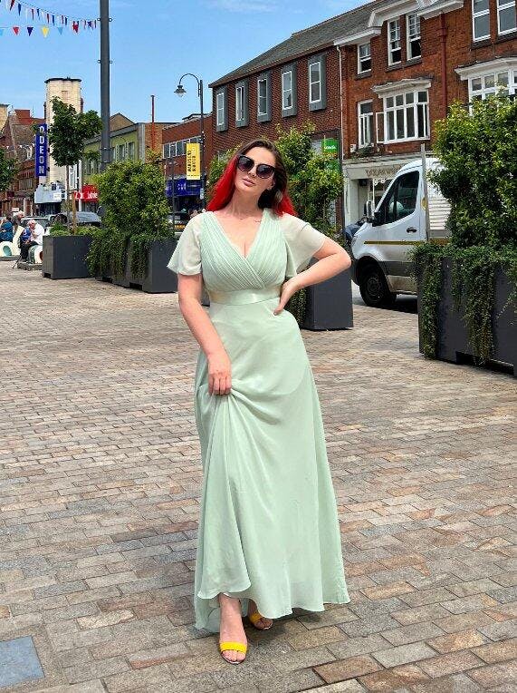 Running out of time to find that perfect bridesmaid dress? Meet Monica! The graceful flutter sleeves and v-neckline create a harmonious look that flatters every bridesmaid, while the empire waist ensures comfort through every toast and dance. Available in a spectrum of wedding-perfect colours, Monica helps create that picture-perfect bridal party you've been envisioning. Buy now to enjoy fast delivery!
