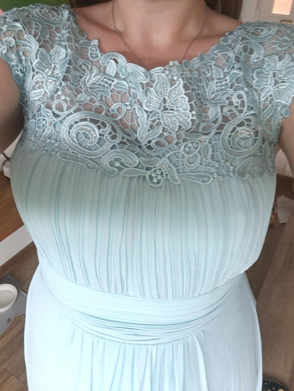 Elegant floor-length chiffon bridesmaid dress for women with lace cap sleeves. Delicate lace and rhinestones decorate the neckline while the ruching in the bust and waist creates a figure-flattering silhouette. This bridesmaid maxi dress is perfect for an evening party, cocktail, prom, homecoming, graduation, wedding, and any other formal affair!