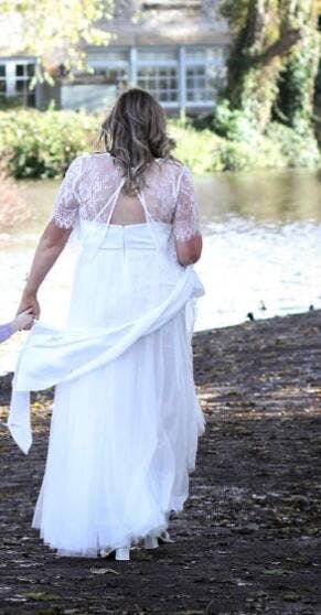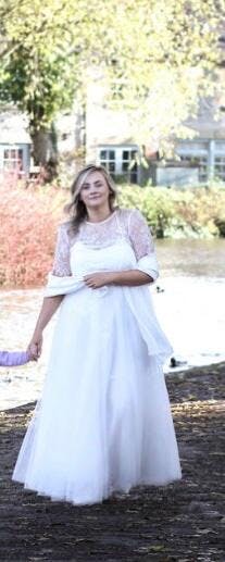 Lace Jacket A-Line Wedding Dress Paired with Spaghetti Strap