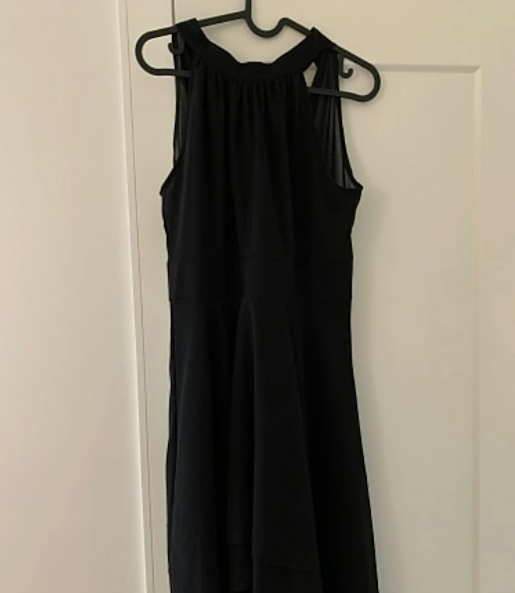 Midi A Line Sleeveless Halter Neck Wedding Guest Dress in Chiffon #color_Black