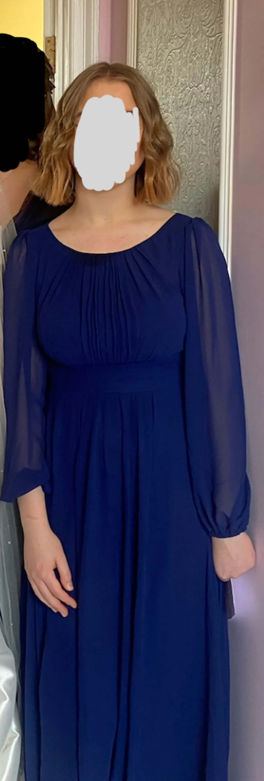 These lightweight dark blue bridesmaid dresses feature a v-neckline, empire waist, flutter sleeves, and subtle high low hemline. They are perfect for weddings and any other formal affair! Find all navy bridesmaid dresses here.