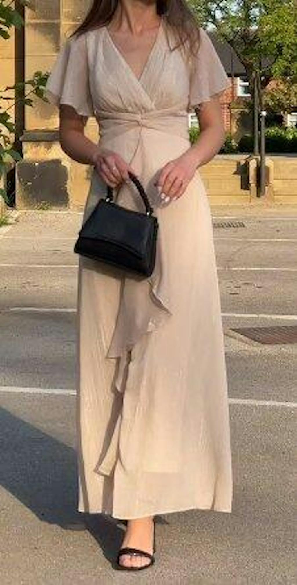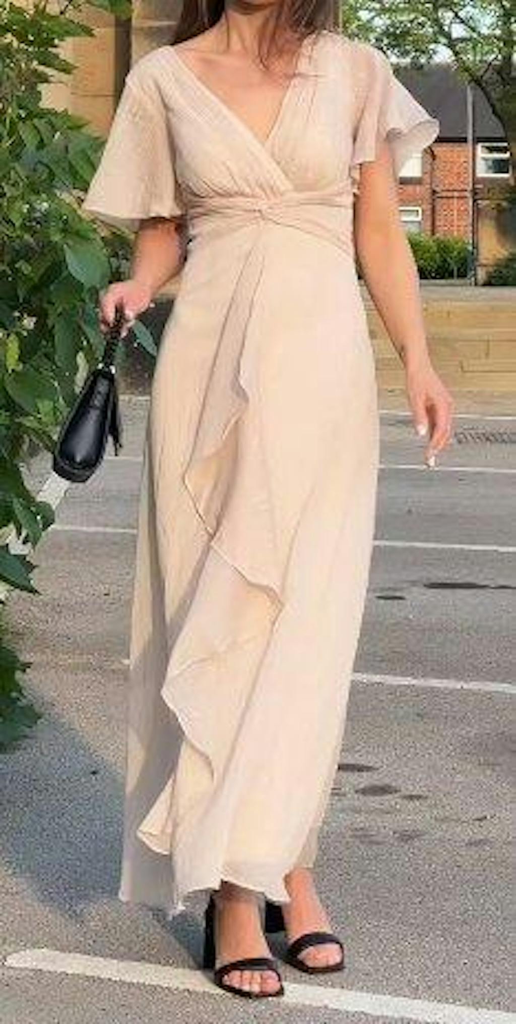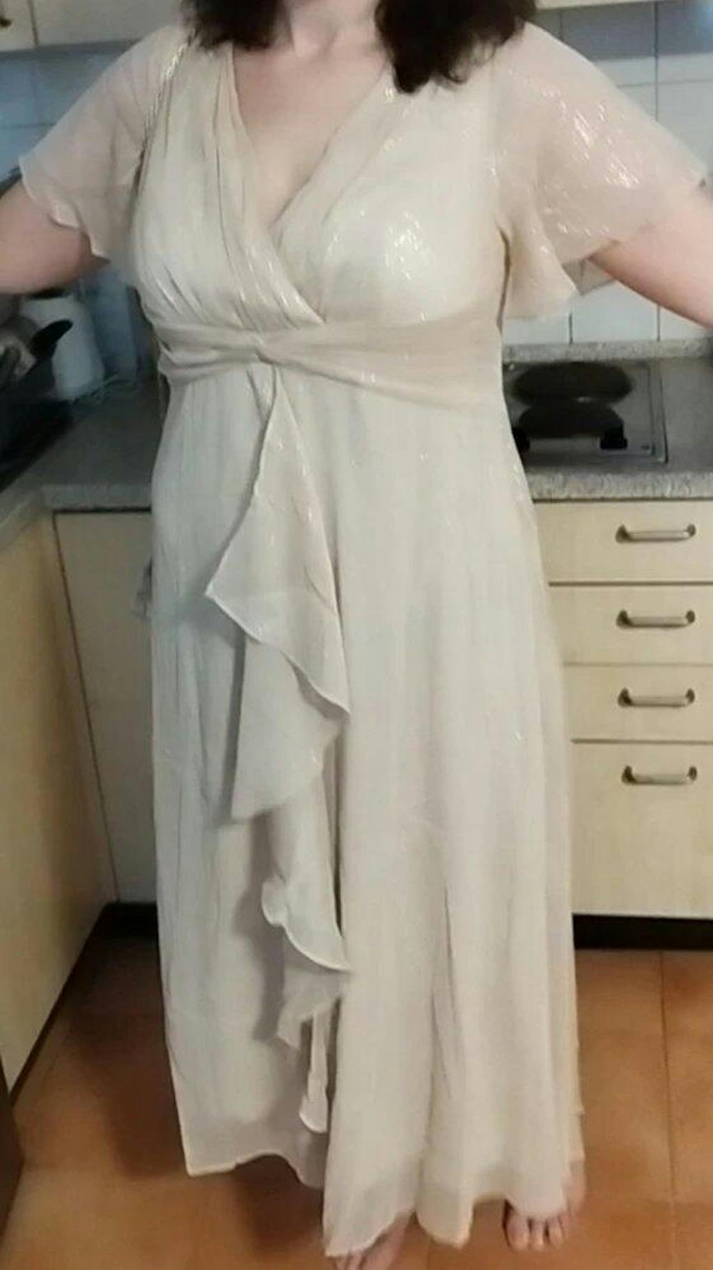 Embrace timeless beauty in this plus size V-neck A-line dress, perfect for any wedding celebration. The delicate short sleeves and ruffle hem create a romantic silhouette, while the silver crinkle fabric adds a touch of glamour. Pair it with your favorite accessories for a polished and sophisticated look that will leave you feeling confident and radiant all day long.