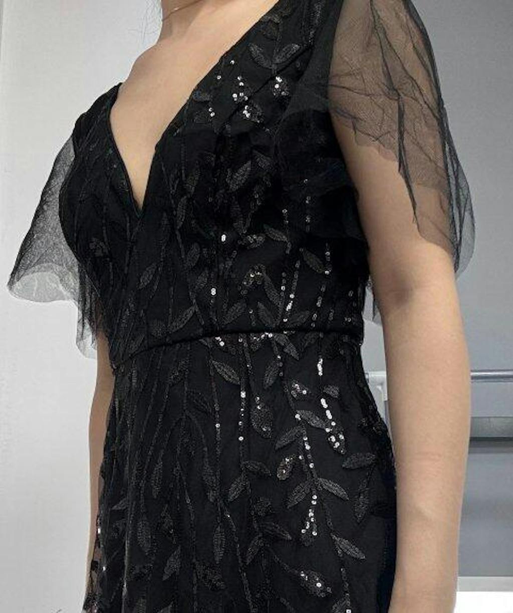 Stunning V Neck Long Wedding Guest Dress with Ruffle Sleeves