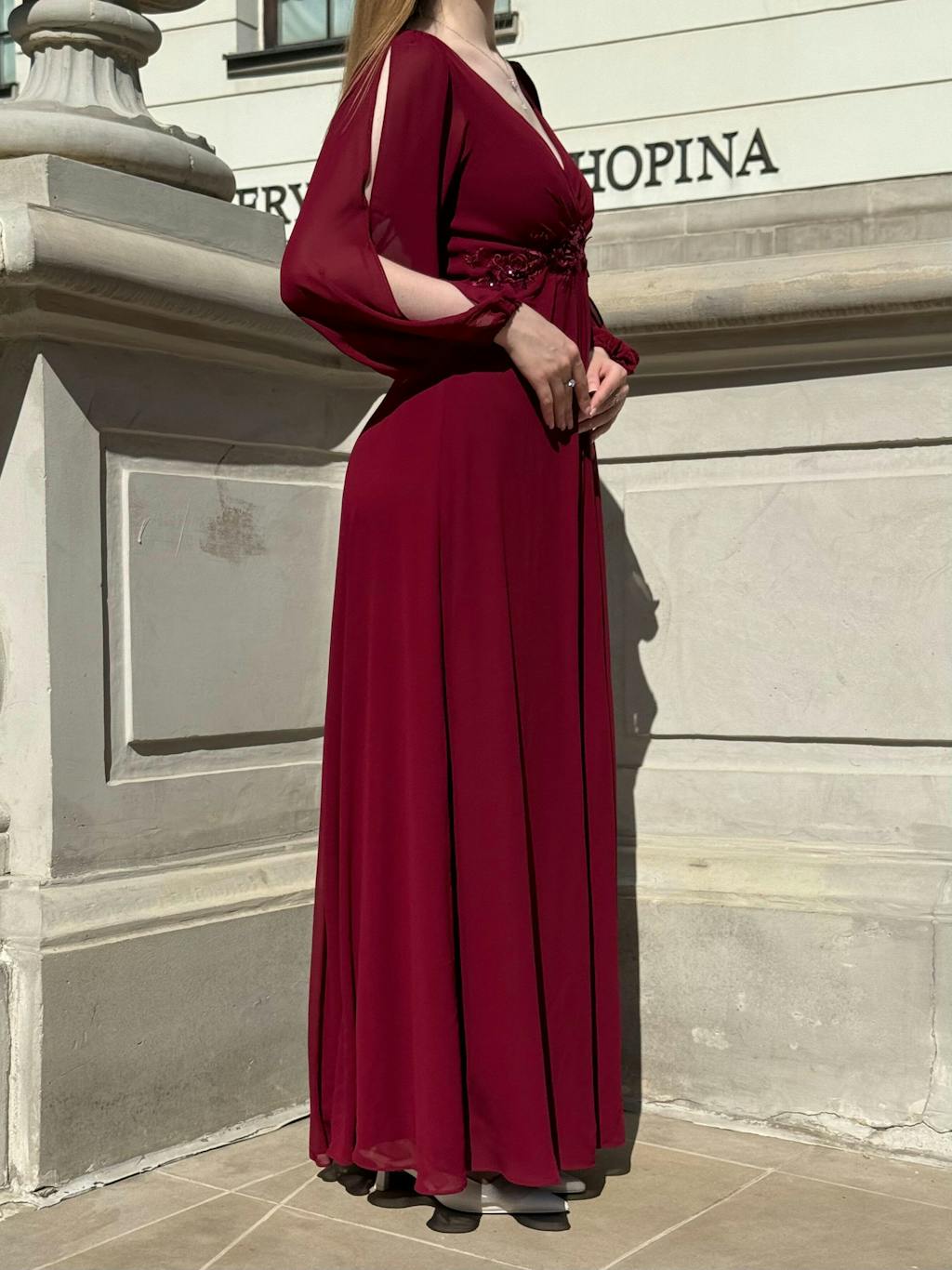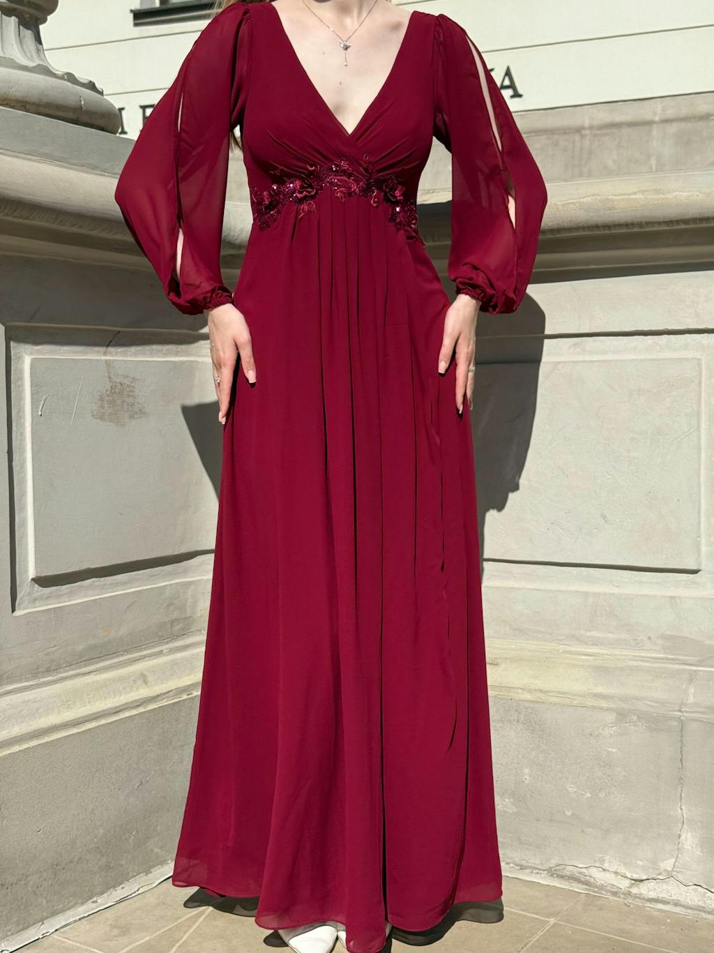 Our plus-size AMOUR gown features show-stopping lantern sleeves that create visual interest while the flowing chiffon moves gracefully with every step. The thoughtful design celebrates your curves with a silhouette that's both flattering and comfortable enough to wear all night.