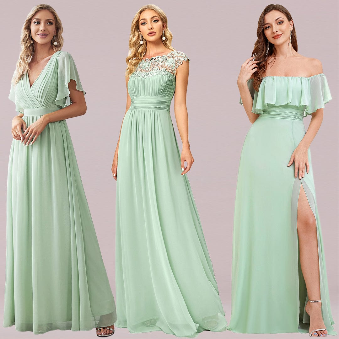 V-Neck Flutter Sleeve Floor-Length A-Line Chiffon Evening Dress