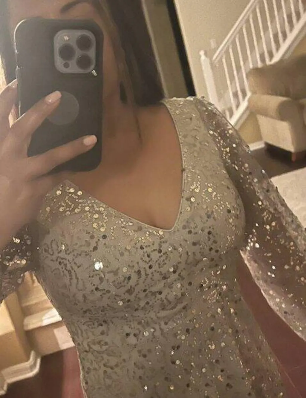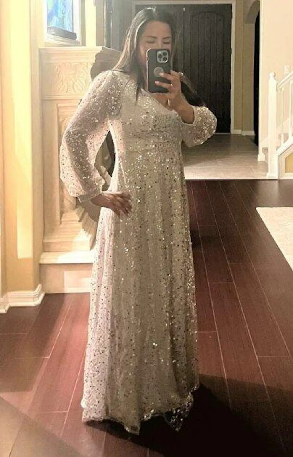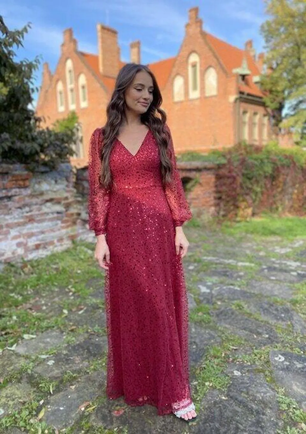 Make a statement at any special event with our shimmering V-neck lantern sleeve sequin A-line evening dress. The V-neckline adds a touch of sophistication, while the lantern sleeves create a unique and elegant look. The sparkling sequin embellishments catch the light beautifully, ensuring you'll be the center of attention. With its flattering A-line silhouette, this dress is designed to accentuate your figure and provide a comfortable fit. Perfect for formal occasions or glamorous evenings, this dress is a must-have for those seeking a show-stopping look.