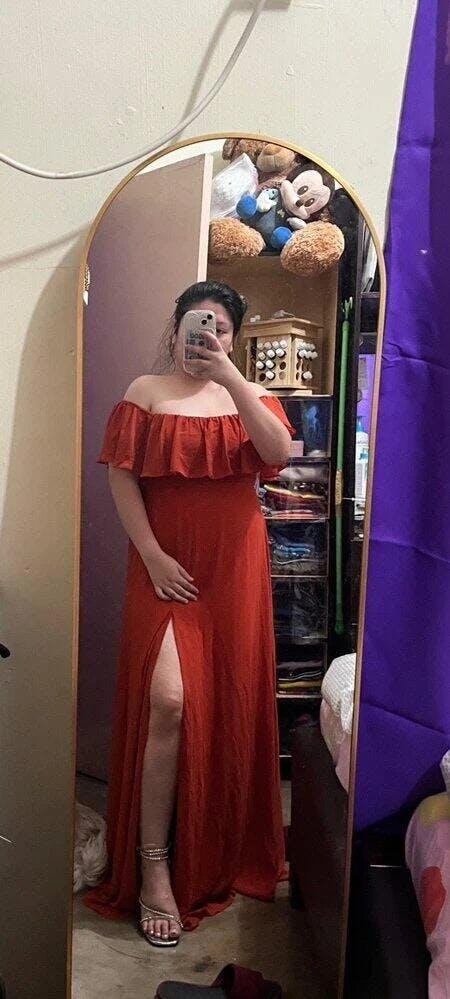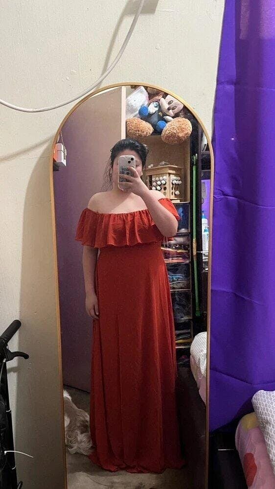 Our off-shoulder chiffon maxi dress is designed to celebrate every body type with inclusive sizing that ensures everyone in the bridal party looks and feels amazing. The flowing fabric and graceful split create a stunning silhouette, while the versatile multiway design lets you customize your look - wear it off-shoulder, strapless, one-shoulder, or with sleeves to match your comfort and style. The no-zipper design means easy wear and all-day comfort for dancing the night away!